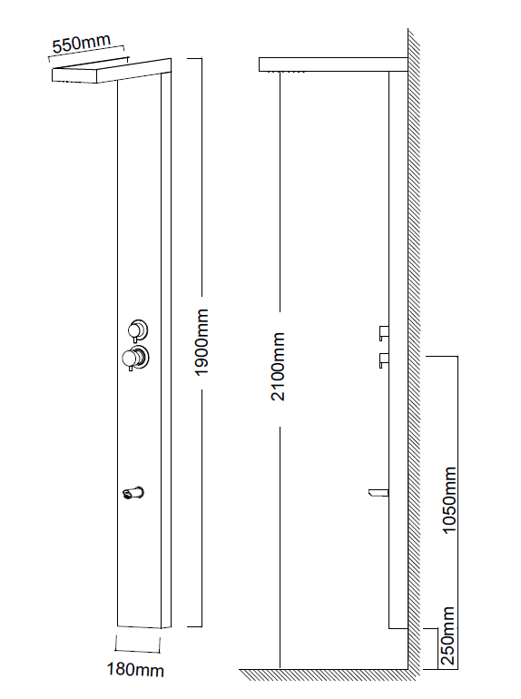 Θερμομικτική, επίτοιχη στήλη ντους εσωτερικού / εξωτερικού χώρου - 2 εξόδων, από ανοξείδωτο χάλυβα AISI 316.